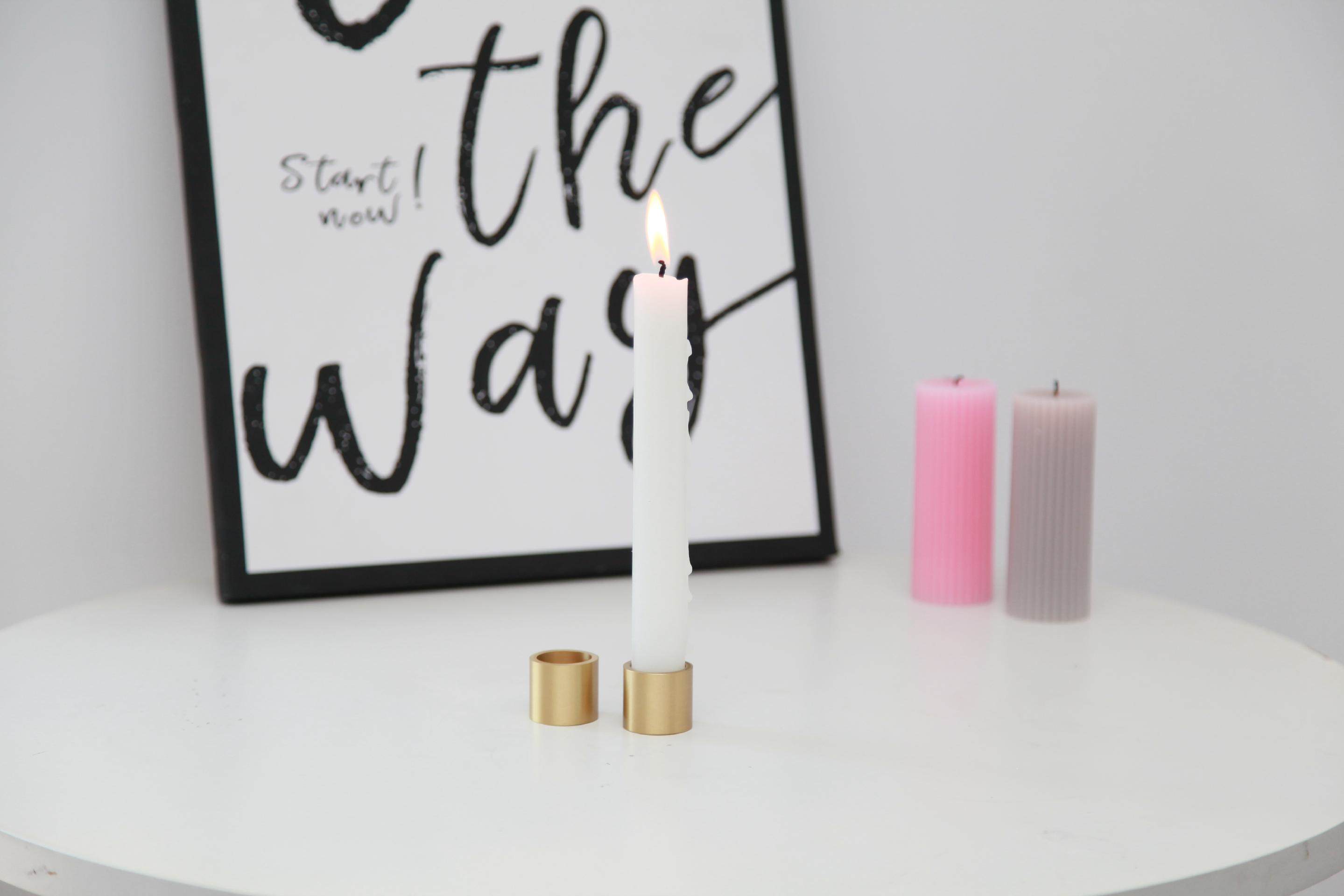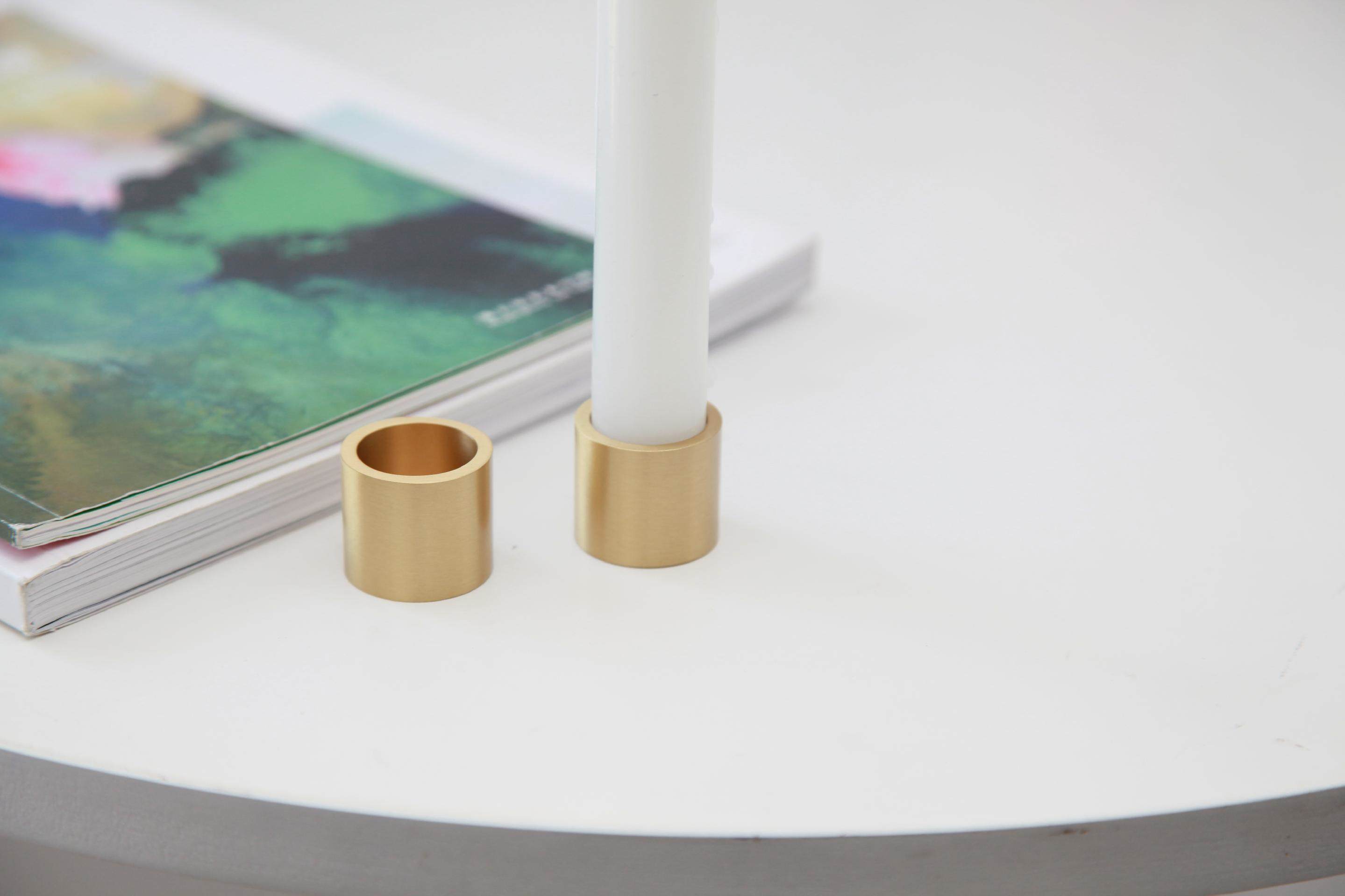 Maxery Brass Candle Holder Hand Cast Solid Brass, Modern Rustic Table Centerpiece