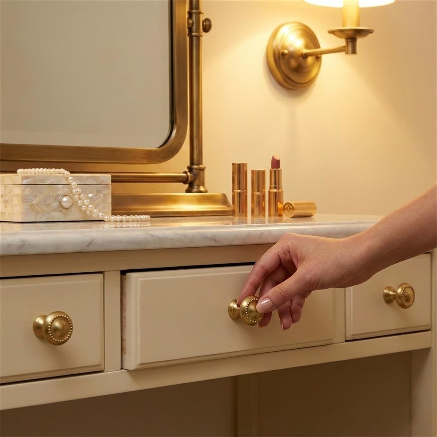 Maxery Brass Cabinet Knob: Circular Beaded Edges. Cozy Artisanal For Dressers/Kitchen Cabinets