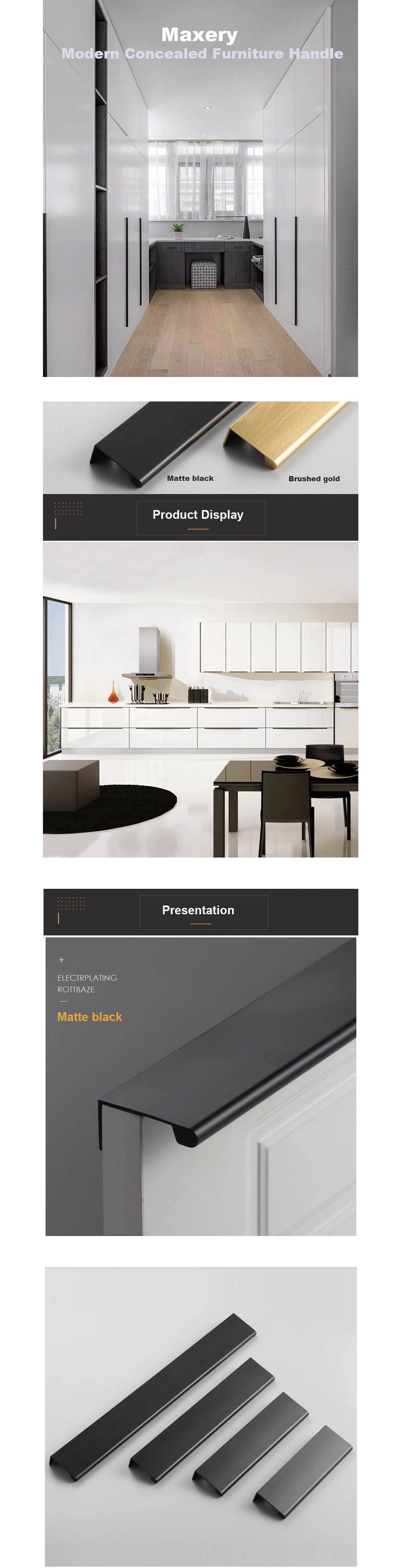 Modern Finger Edge Pull Tab Pull,Finger Drawer Pull, Matte Black and Brushed Gold